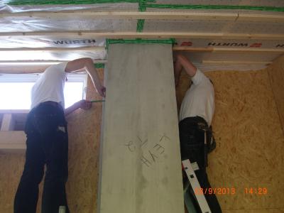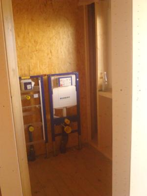 Nachdem die Elektro- und Sanitärinstallationen fürs Erste abgeschlossen sind, sind wir nun wieder dran: Weiter geht es mit Beplanken: Lt. Bauleiter können wir nun die Installationswände mit OSB verkleiden.