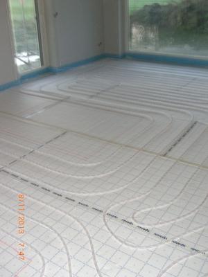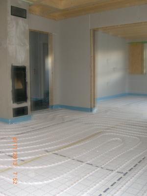 Bevor es soweit war, wurde aber noch die Fussbodenheizung verlegt, vor den Schläuchen wurde die Dämmung vorbereitet: